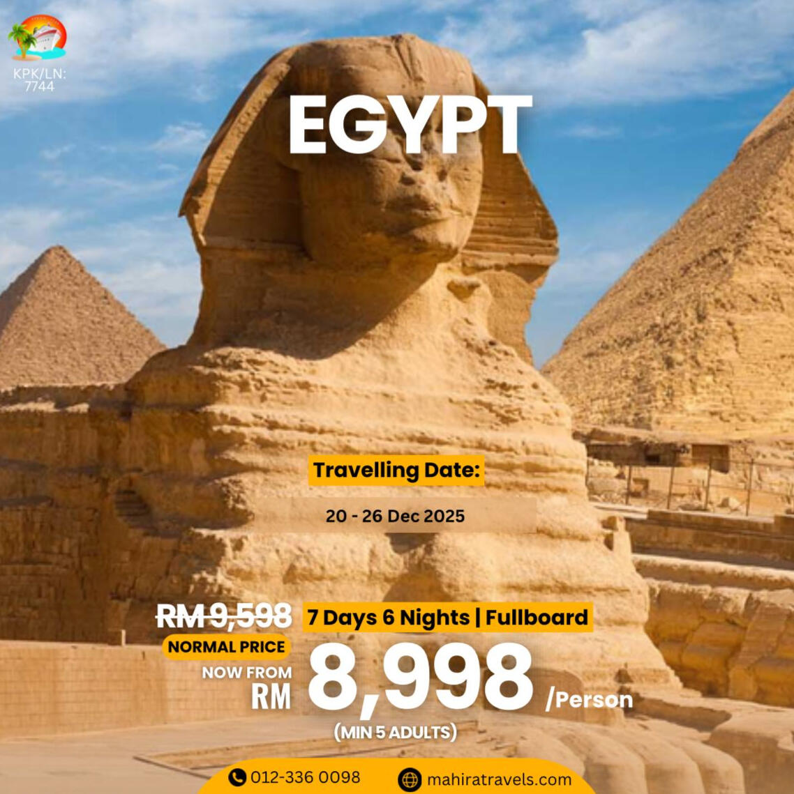 ABOUT US:We are Mahira Travel & Tours Sdn Bhd a 100% Bumiputra company fully licensed ( kpk/LN: 7744 ) conducting inbound & outbound tours as well as airline ticketing services registered with the Ministry Of Tourism Malaysia.