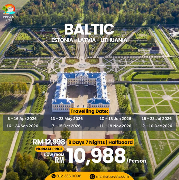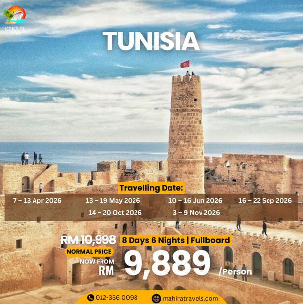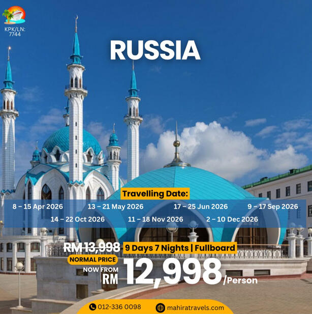 Mengapa Pilih Kami?- Agensi pelancongan bumiputra yang di daftar & di lesenkan oleh MOTAC (Kementerian Pelancongan & Kebudayaan Malaysia) untuk mengendalikan pelancongan dalam & luar negeri. ( Outbound, Inbound & Ticketing)- Ahli Persatuan MATTA- Berpengalaman lebih 15 tahun dalam menguruskan pakej Muslim Tour- Berpengalaman menguruskan trip jabatan kerajaan (official visit), syarikat-syarikat GLC & Korporat, universiti, sekolah, kelab sukan, bank, O & G, plantation, rombongan & private tour.- Makanan halal terjamin- Destinasi mesra Muslim seluruh dunia- Group tour yang tidak ramai dan besar. Ahli rombongan maksimum 20 paxs untuk memastikan keselesaan dan santai- Tour guide berpengalaman & mesra- Itinerari lebih santai, tidak padat- Penginapan Hotel 3 - 4 bintang (bagi pakej standard) , selesa, bersih & terletak di lokasi kawasan selamat untuk pelancong- Pakej mesra warga mas (berpengalaman)- Harga yang sangat berpatutan- Sokongan & pantauan perjalanan oleh kami semasa perjalanan tour di luar negara berlangsung- Tiada "pembelian paksaan" (tourist trap) berlaku semasa melancong- Harga pakej sudah termasuk tiket penerbangan pergi-balik (ekonomi) yang waktu, hari & airlines ditetapkan oleh kami- Harga Pakej termasuk makanan 2 atau 3 kali sehari bergantung pada pakej yg ditawarkan