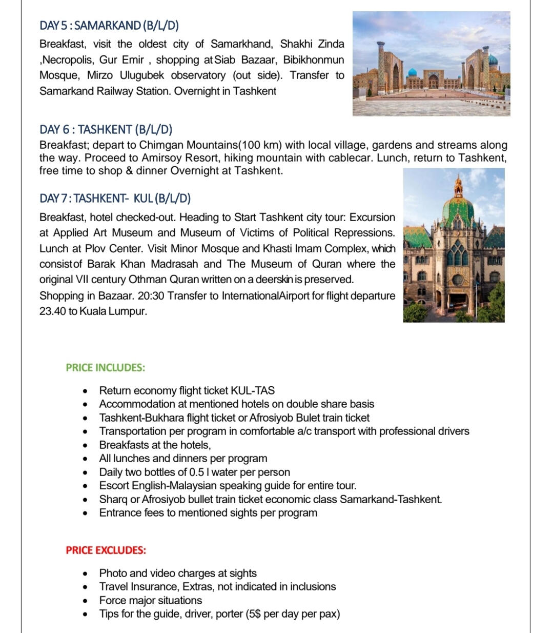 Uzbekistan Itinerari