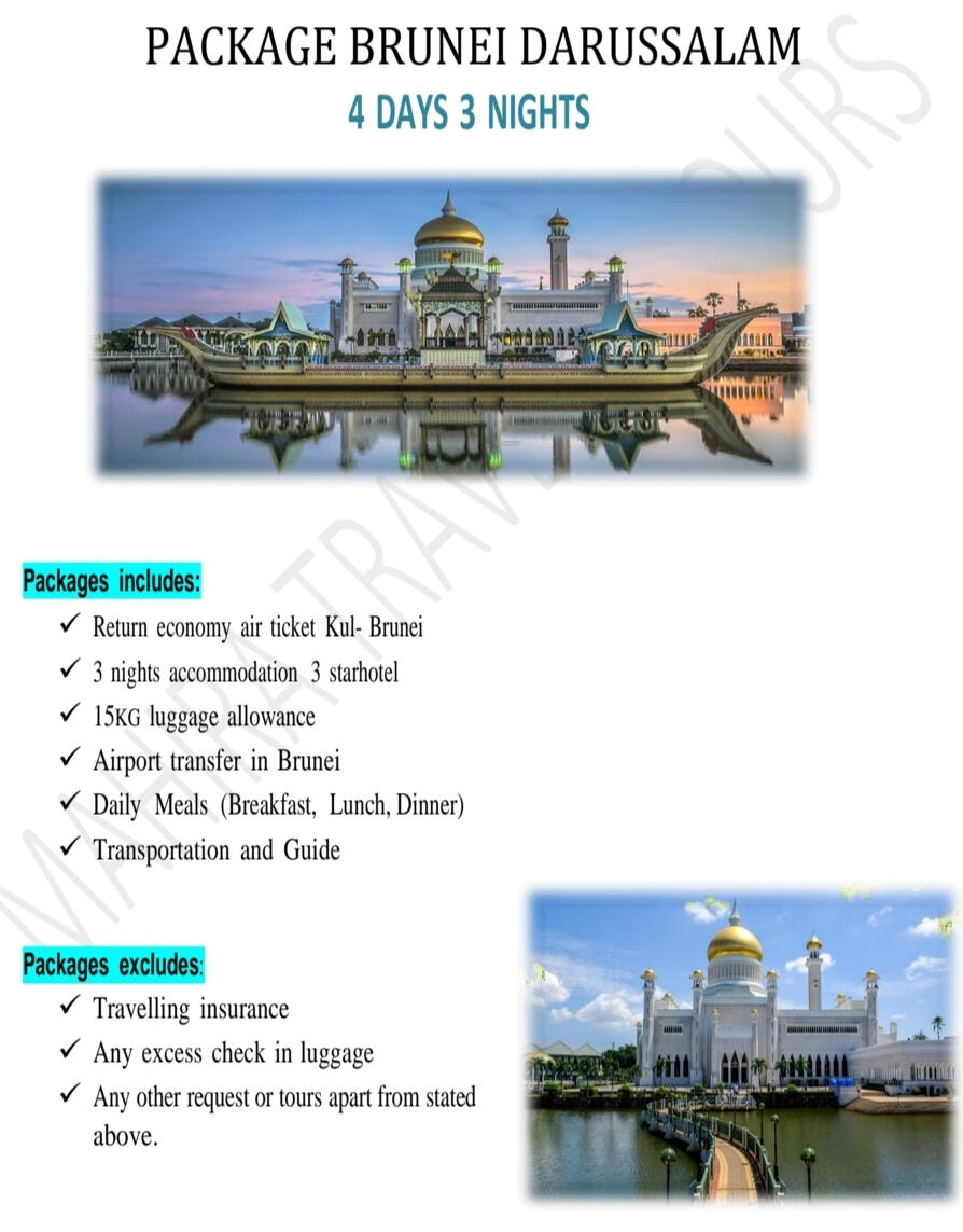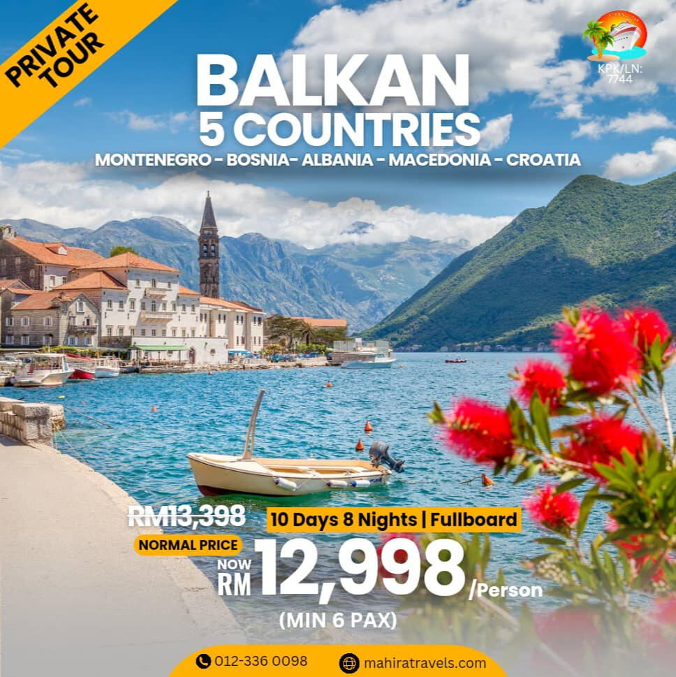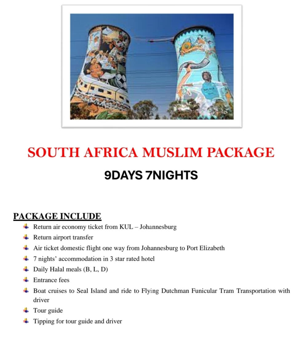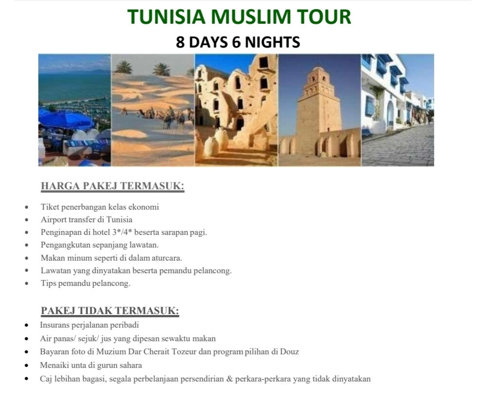 Mengapa Pilih Kami?- Agensi pelancongan bumiputra yang di daftar & di lesenkan oleh MOTAC (Kementerian Pelancongan & Kebudayaan Malaysia) untuk mengendalikan pelancongan dalam & luar negeri. ( Outbound, Inbound & Ticketing)- Ahli Persatuan MATTA- Berpengalaman lebih 15 tahun dalam menguruskan pakej Muslim Tour- Berpengalaman menguruskan trip jabatan kerajaan (official visit), syarikat-syarikat GLC & Korporat, universiti, sekolah, kelab sukan, bank, O & G, plantation, rombongan & private tour.- Makanan halal terjamin- Destinasi mesra Muslim seluruh dunia- Group tour yang tidak ramai dan besar. Ahli rombongan maksimum 20 paxs untuk memastikan keselesaan dan santai- Tour guide berpengalaman & mesra- Itinerari lebih santai, tidak padat- Penginapan Hotel 3 - 4 bintang (bagi pakej standard) , selesa, bersih & terletak di lokasi kawasan selamat untuk pelancong- Pakej mesra warga mas (berpengalaman)- Harga yang sangat berpatutan- Sokongan & pantauan perjalanan oleh kami semasa perjalanan tour di luar negara berlangsung- Tiada "pembelian paksaan" (tourist trap) berlaku semasa melancong- Harga pakej sudah termasuk tiket penerbangan pergi-balik (ekonomi) yang waktu, hari & airlines ditetapkan oleh kami- Harga Pakej termasuk makanan 2 atau 3 kali sehari bergantung pada pakej yg ditawarkan