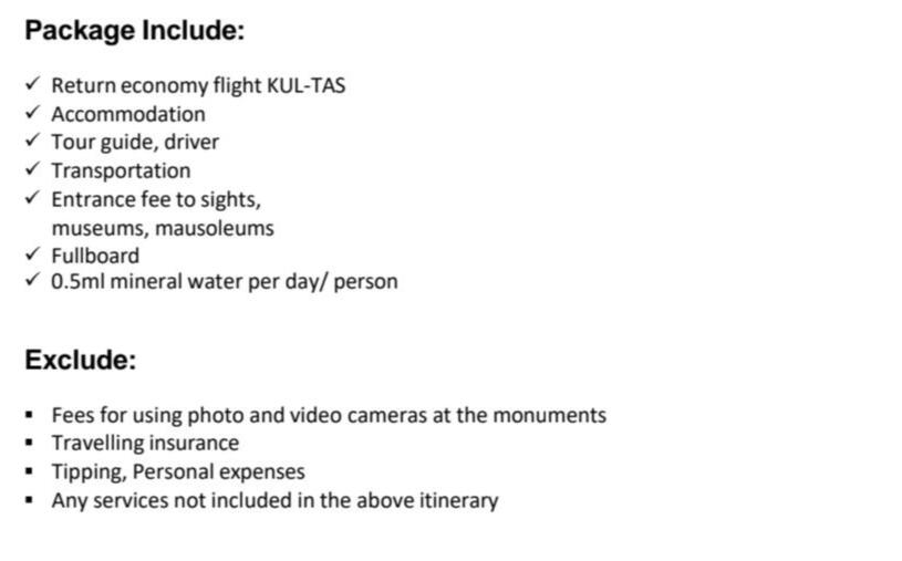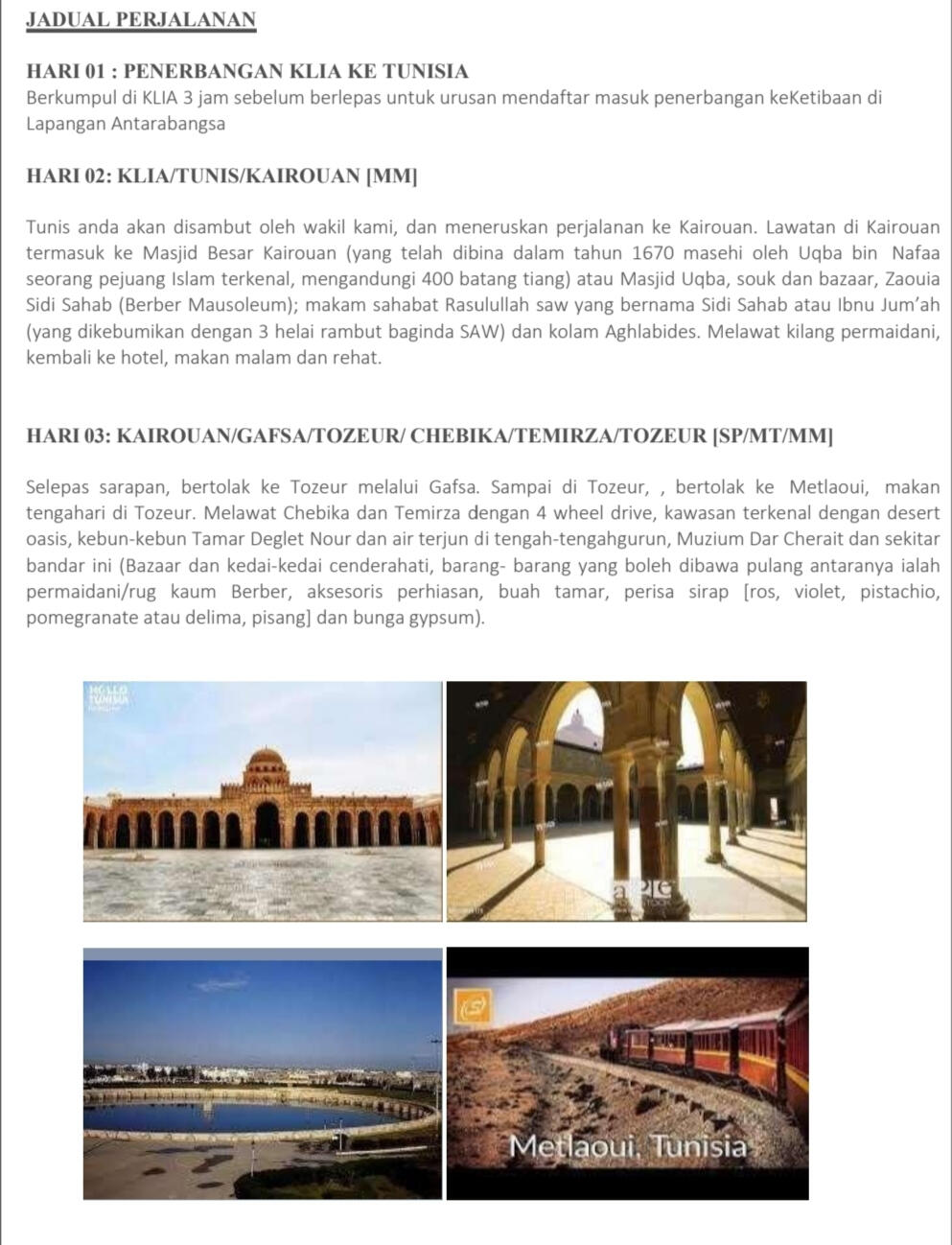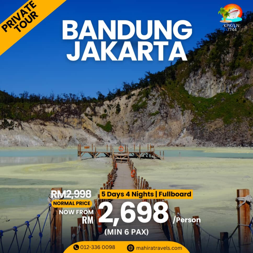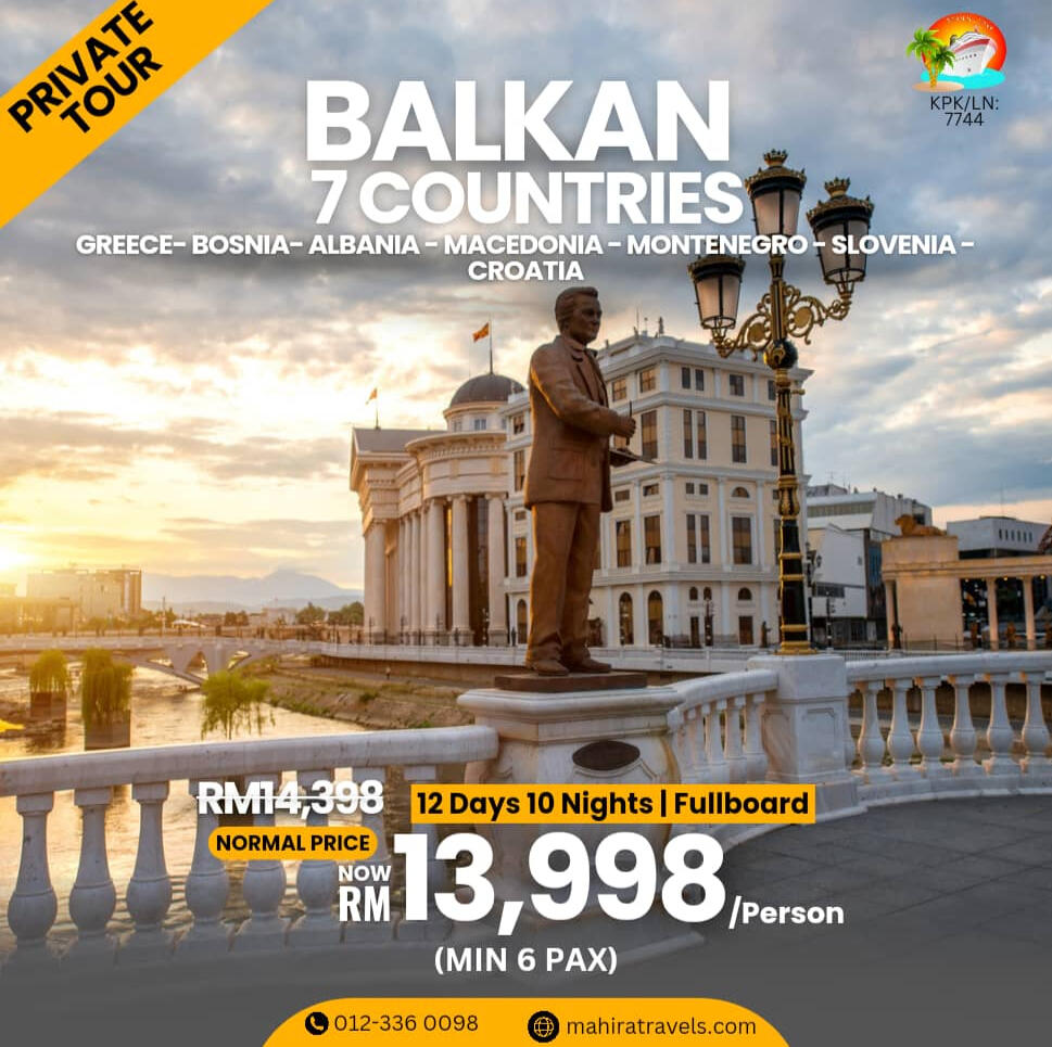 Mengapa Pilih Kami?- Agensi pelancongan bumiputra yang di daftar & di lesenkan oleh MOTAC (Kementerian Pelancongan & Kebudayaan Malaysia) untuk mengendalikan pelancongan dalam & luar negeri. ( Outbound, Inbound & Ticketing)- Ahli Persatuan MATTA- Berpengalaman lebih 15 tahun dalam menguruskan pakej Muslim Tour- Berpengalaman menguruskan trip jabatan kerajaan (official visit), syarikat-syarikat GLC & Korporat, universiti, sekolah, kelab sukan, bank, O & G, plantation, rombongan & private tour.- Makanan halal terjamin- Destinasi mesra Muslim seluruh dunia- Group tour yang tidak ramai dan besar. Ahli rombongan maksimum 20 paxs untuk memastikan keselesaan dan santai- Tour guide berpengalaman & mesra- Itinerari lebih santai, tidak padat- Penginapan Hotel 3 - 4 bintang (bagi pakej standard) , selesa, bersih & terletak di lokasi kawasan selamat untuk pelancong- Pakej mesra warga mas (berpengalaman)- Harga yang sangat berpatutan- Sokongan & pantauan perjalanan oleh kami semasa perjalanan tour di luar negara berlangsung- Tiada "pembelian paksaan" (tourist trap) berlaku semasa melancong- Harga pakej sudah termasuk tiket penerbangan pergi-balik (ekonomi) yang waktu, hari & airlines ditetapkan oleh kami- Harga Pakej termasuk makanan 2 atau 3 kali sehari bergantung pada pakej yg ditawarkan