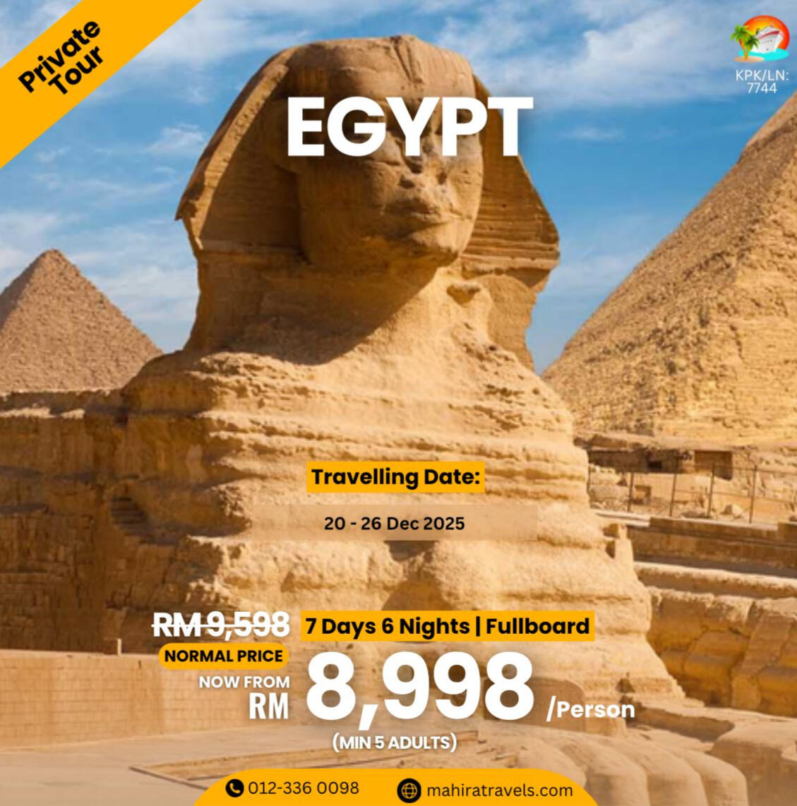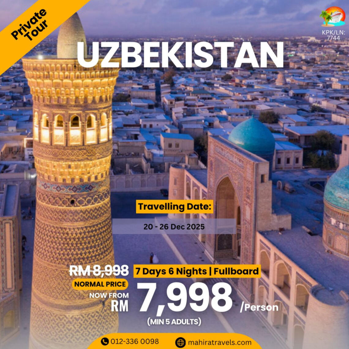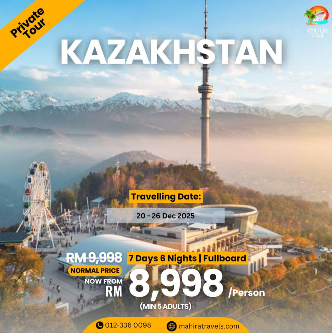 ABOUT US:We are Mahira Travel & Tours Sdn Bhd a 100% Bumiputra company fully licensed ( kpk/LN: 7744 ) conducting inbound & outbound tours as well as airline ticketing services registered with the Ministry Of Tourism Malaysia.